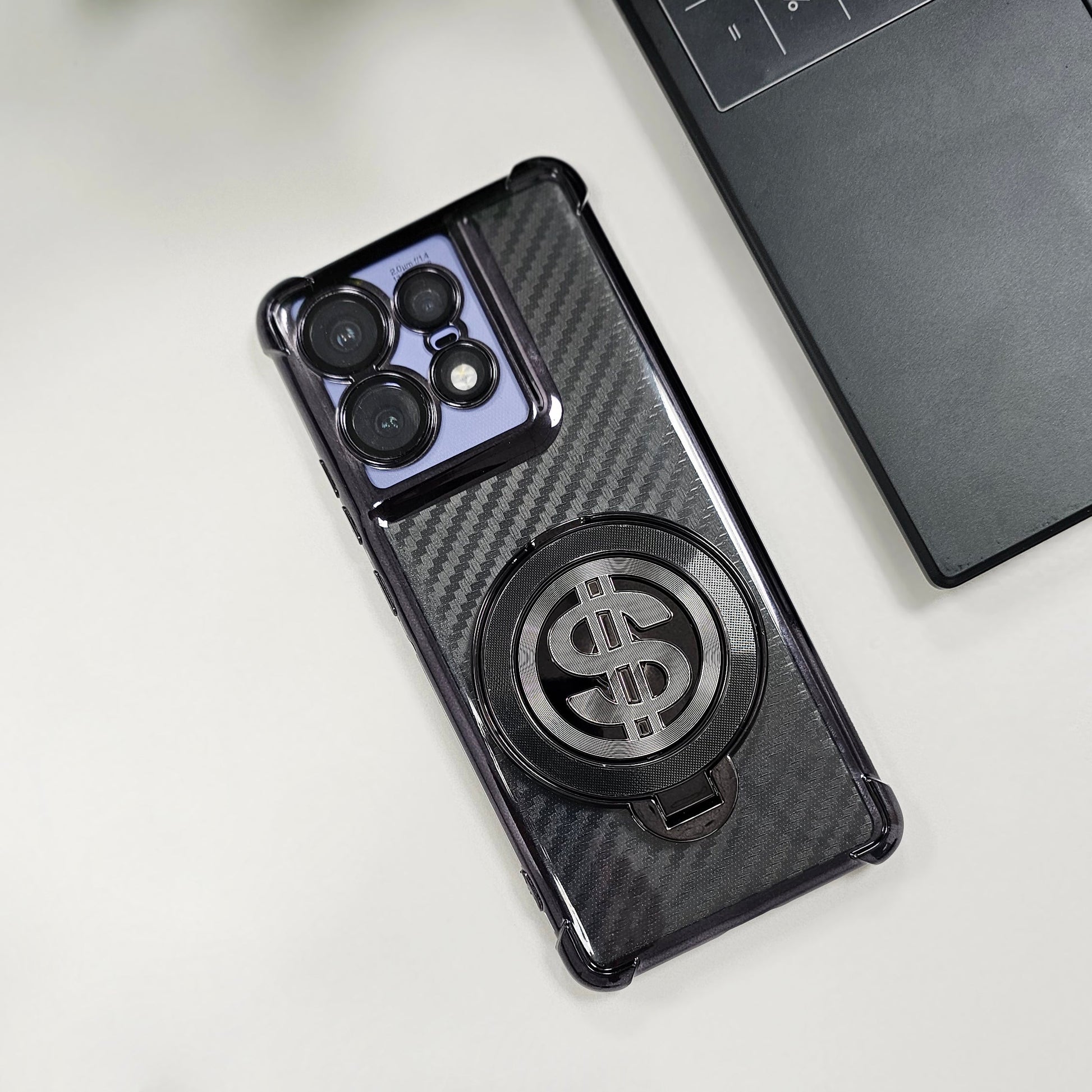 Motorola Edge 50 Pro 5G Premium Carbon Fiber Shockproof Airbags Dollar Rotating Case
